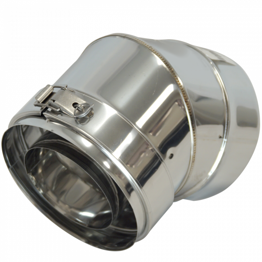 Dvojstenné koncentrické koleno na odvod spalín z plynových krbov je vyrobené z ocele odolnej voči kyselinám.