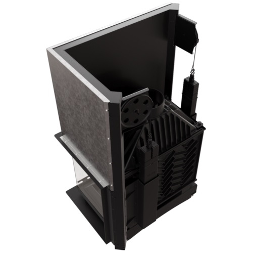 Husto umiestnené radiátory na tele krbovej vložky zabezpečujú zvýšené využitie energie.