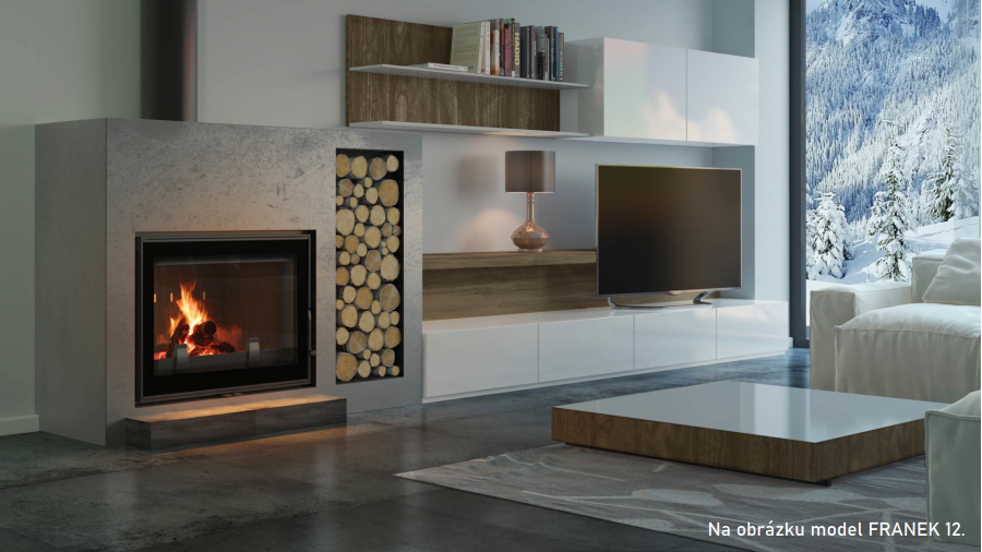 Dekoratívne sklo s vysokou odolnosťou typu GLASS, ktoré opticky zväčšuje presklenie krbovej vložky.
