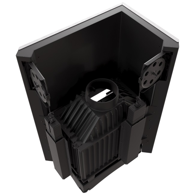 Husto umiestnené radiátory na tele krbovej vložky zabezpečujú zvýšené využitie energie.