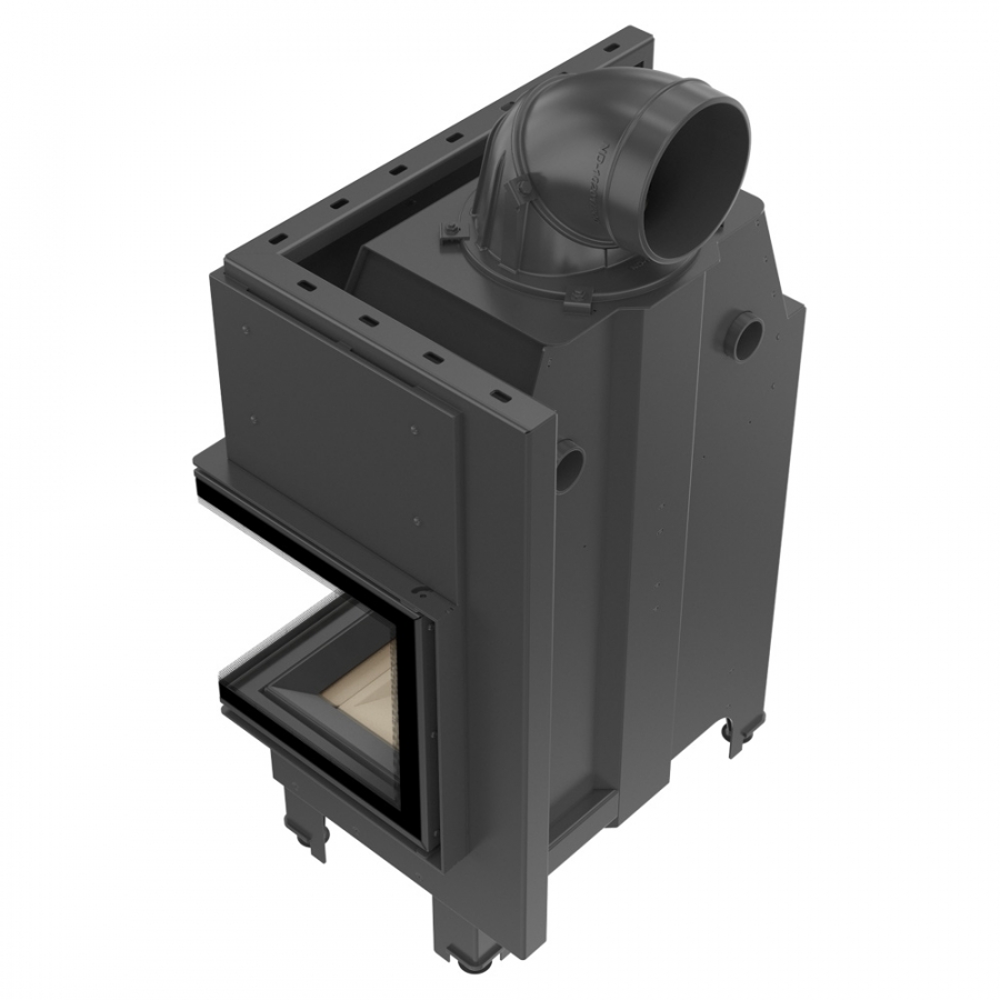Rohová krbová vložka so sklami spájanými pod 90° uhlom.