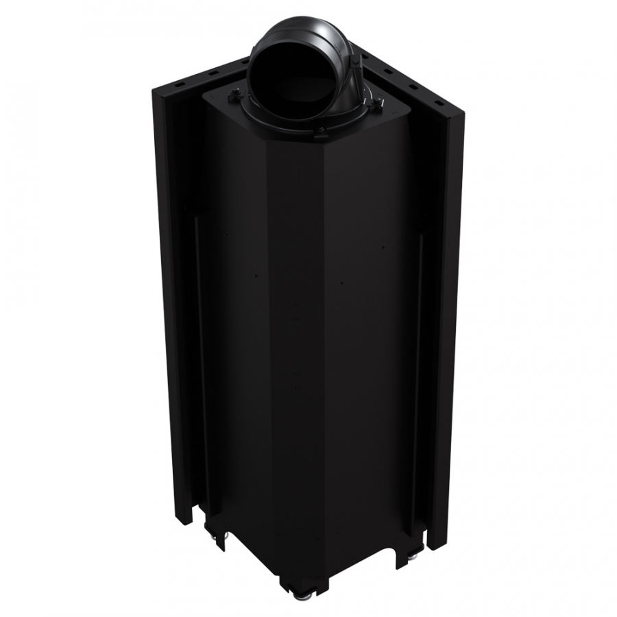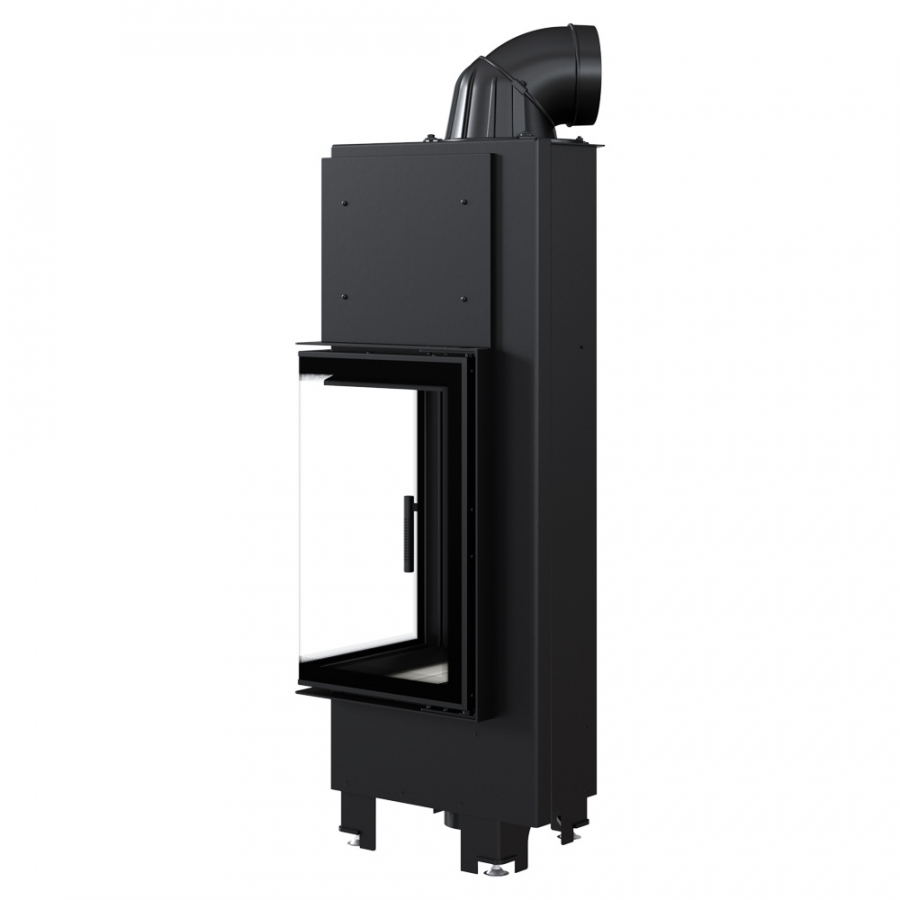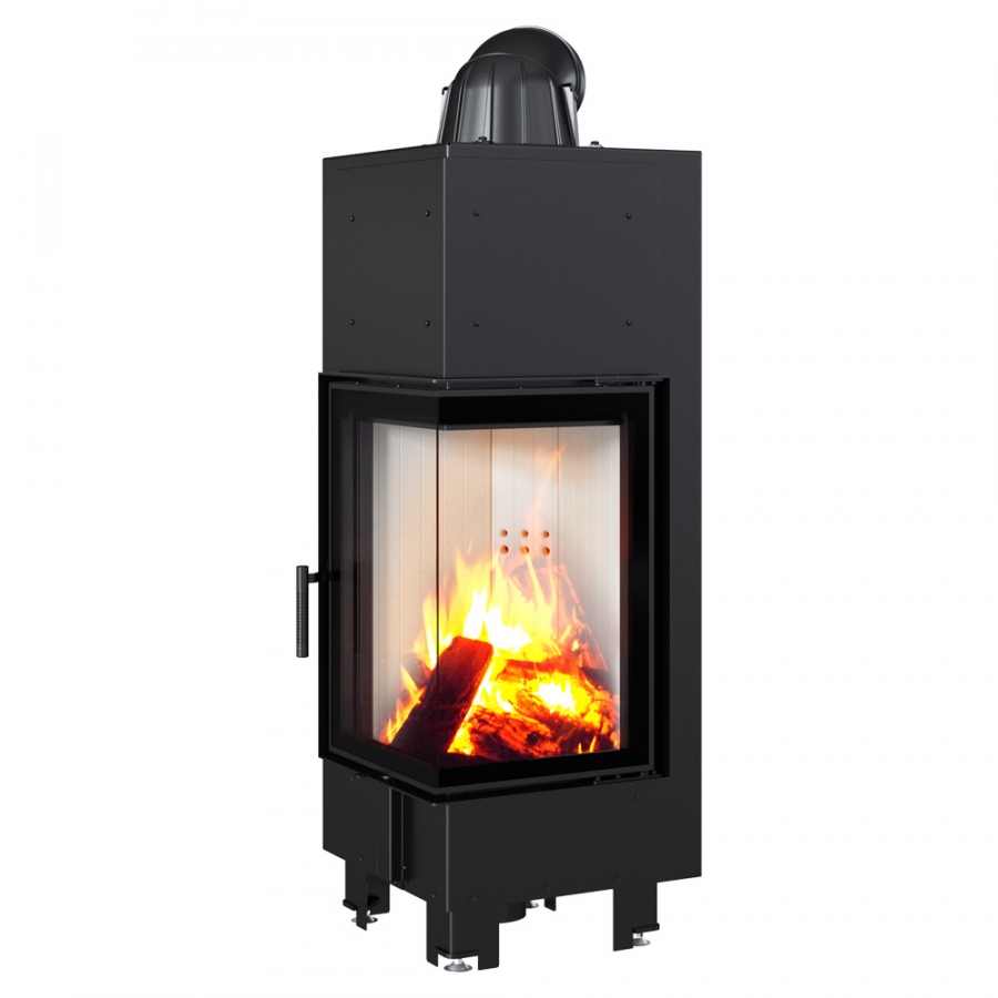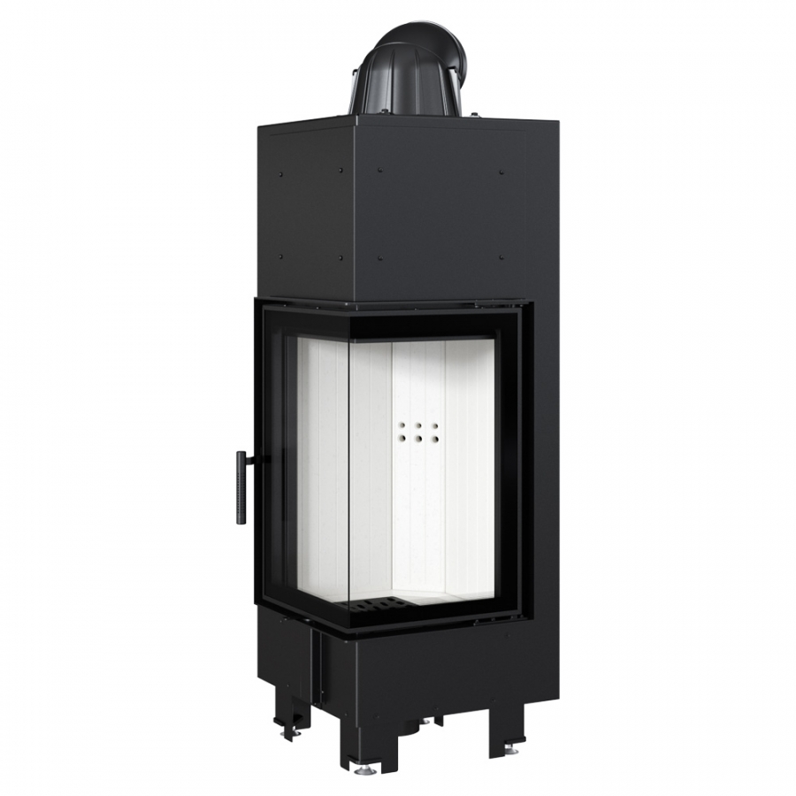 Rohová krbová vložka so sklami spájanými pod 90° uhlom.