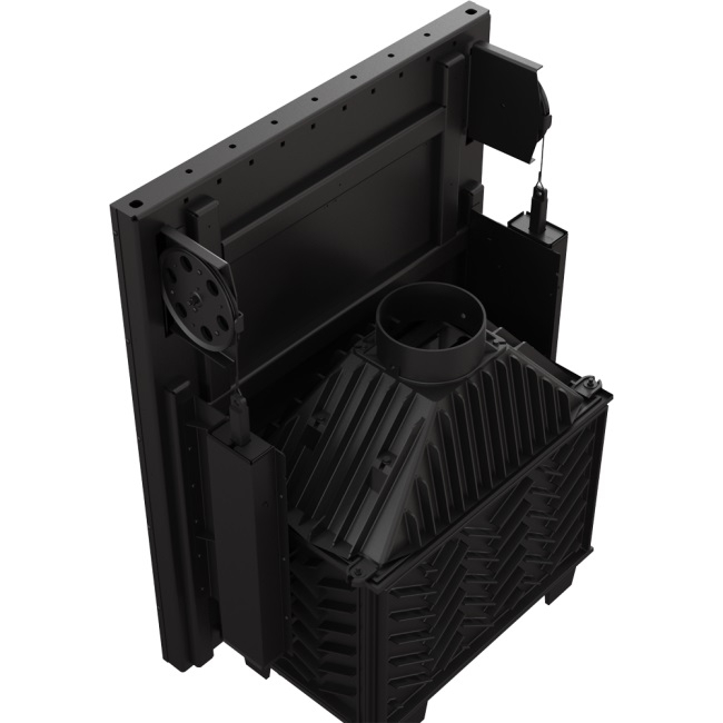 Husto umiestnené radiátory na tele krbovej vložky zabezpečujú zvýšené využitie energie.