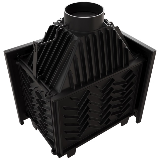 Husto umiestnené radiátory na tele krbovej vložky zabezpečujú zvýšené využitie energie.