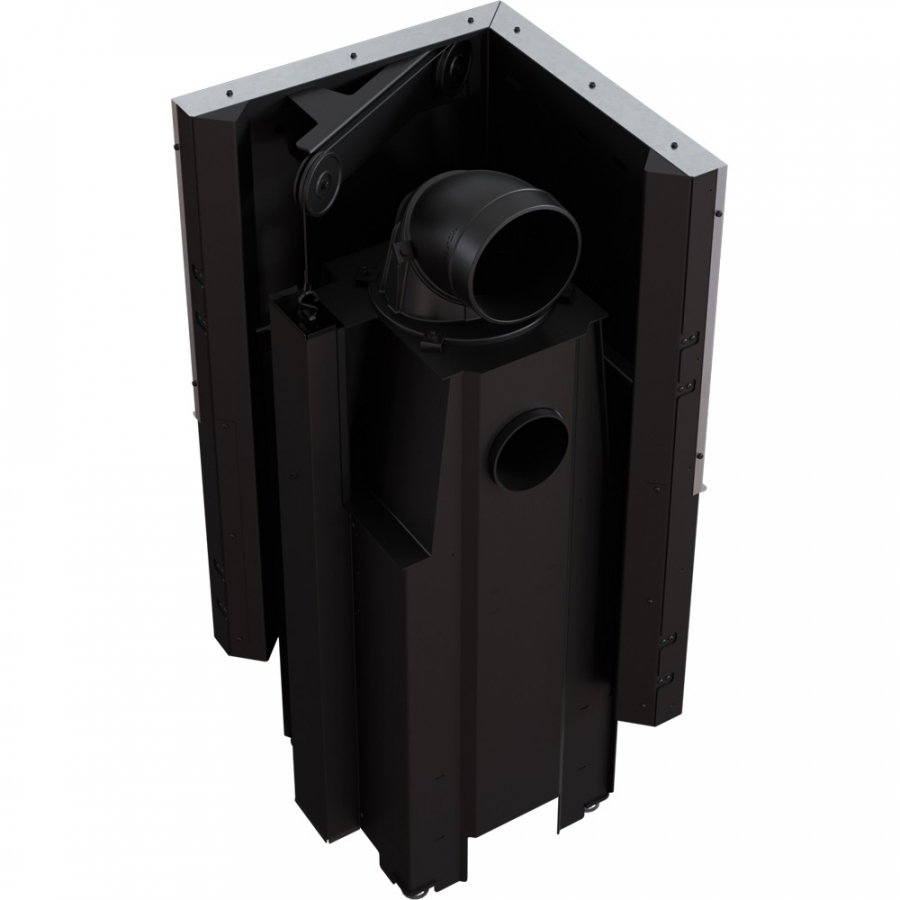 Krbová vložka s výsuvným otváraním dvierok - systém lift-up. Tento systém je postavený na základe protizávažia - kladka s oceľovým lankom je vedené na dvoch guľkových ložiskách, vďaka čomu je váha dverí rovnomerne rozdelená. Výsuv dverí je niekoľko milimetrov od tela, čo zabraňuje poškodeniu tesnenia a dvierka sa pri zatvorení silne zatlačia, vďaka čomu je spaľovacia komora úplne utesnená.