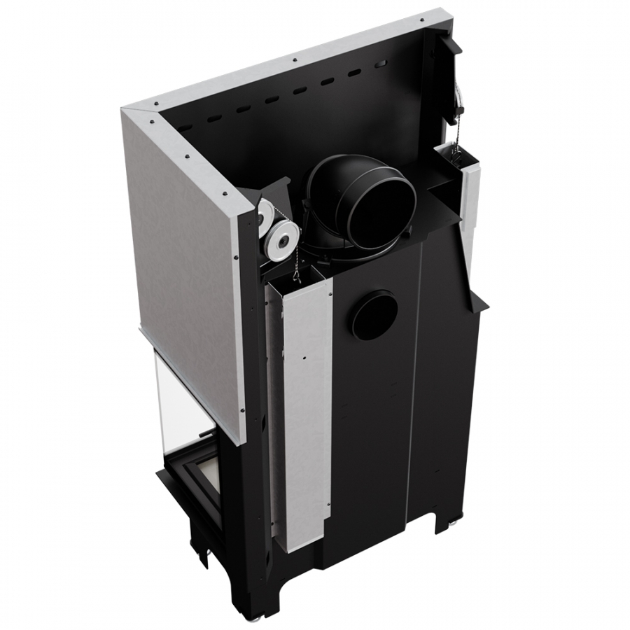Vnútorný revízny systém umožňuje vykonávať servisné činnosti bez zásahu do obstavby krbu.