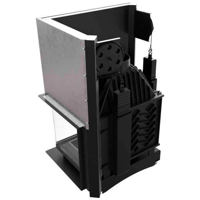 Husto umiestnené radiátory na tele krbovej vložky zabezpečujú zvýšené využitie energie.