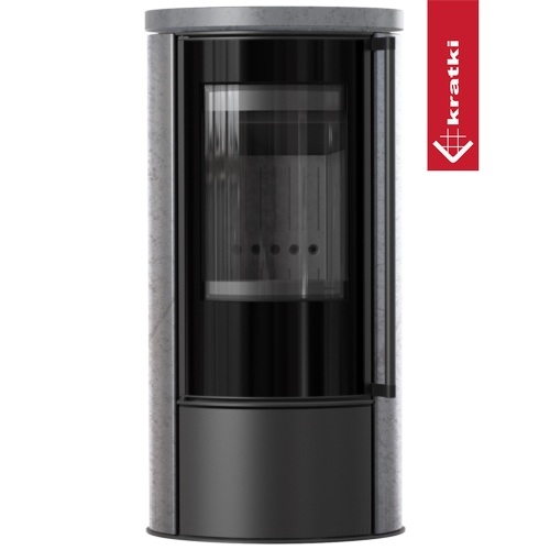 Krbové kachle ERIK s akumulačnou keramikou a keramickým vrchom - GREY SATIN s čiernym ohniskom