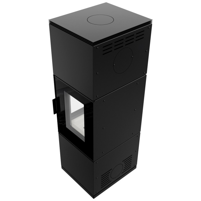 Dvojité zasklenie po stranách zvyšuje tesnosť spaľovacej komory a znižuje tepelné vyžarovanie pre optimalizáciu procesu spaľovania dreva.