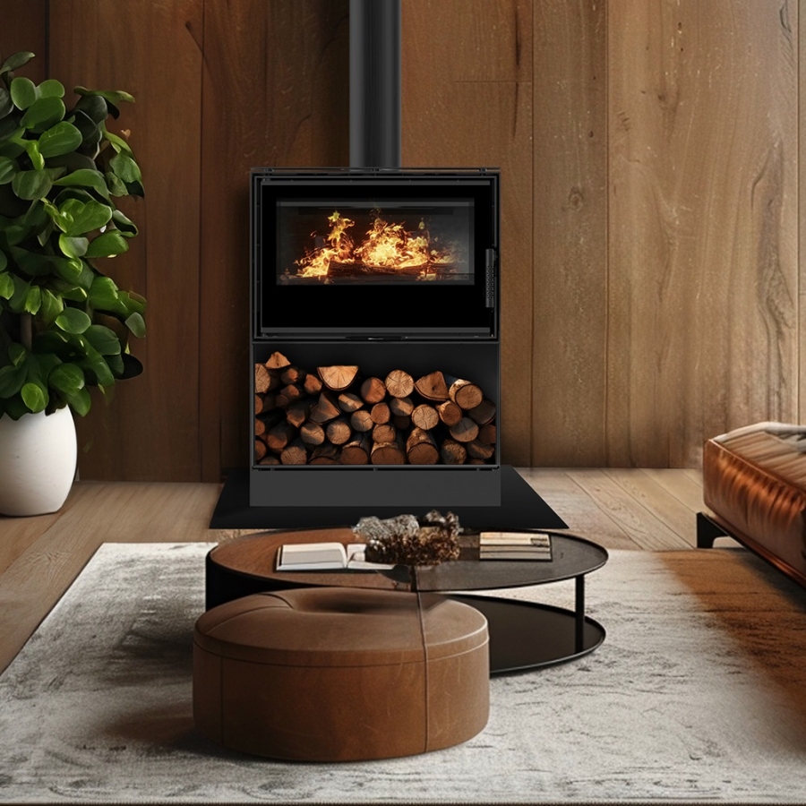Krbové kachle KARI 70 s podstavcom na drevo s čiernym ohniskom