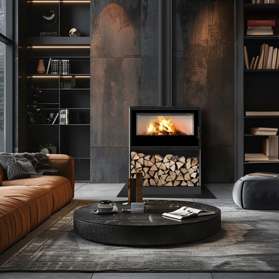Krbové kachle KARI 95 s podstavcom na drevo s čiernym ohniskom