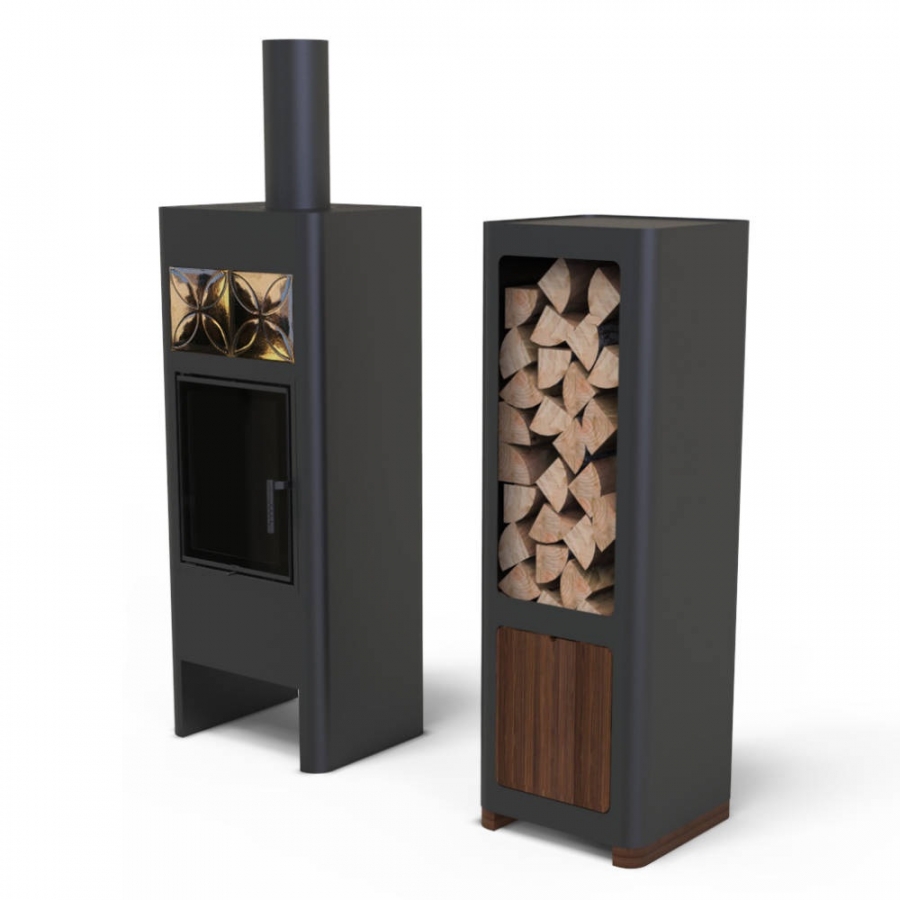 Kolekcia Luna je dostupná v čiernej alebo bielej farbe, s oceľovými alebo drevenými nohami. Predná strana kachlí je vybavená dekoratívnymi keramickými kachličkami a minimalistickým vrchným krytom.