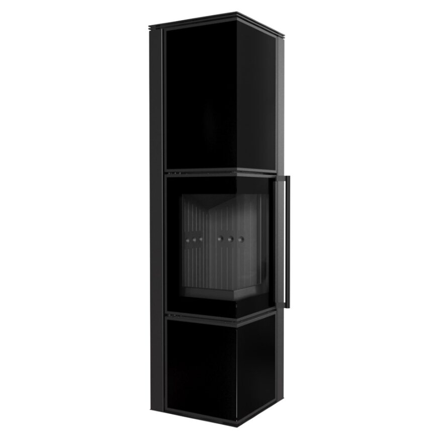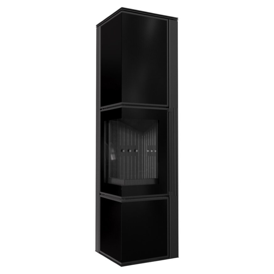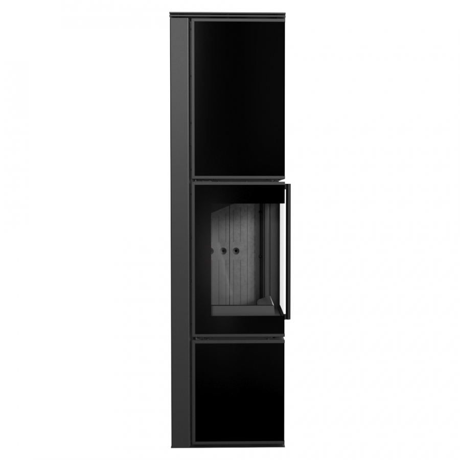 Krbové kachle TORA L 8 s čiernymi sklenenými panelmi a čiernym ohniskom