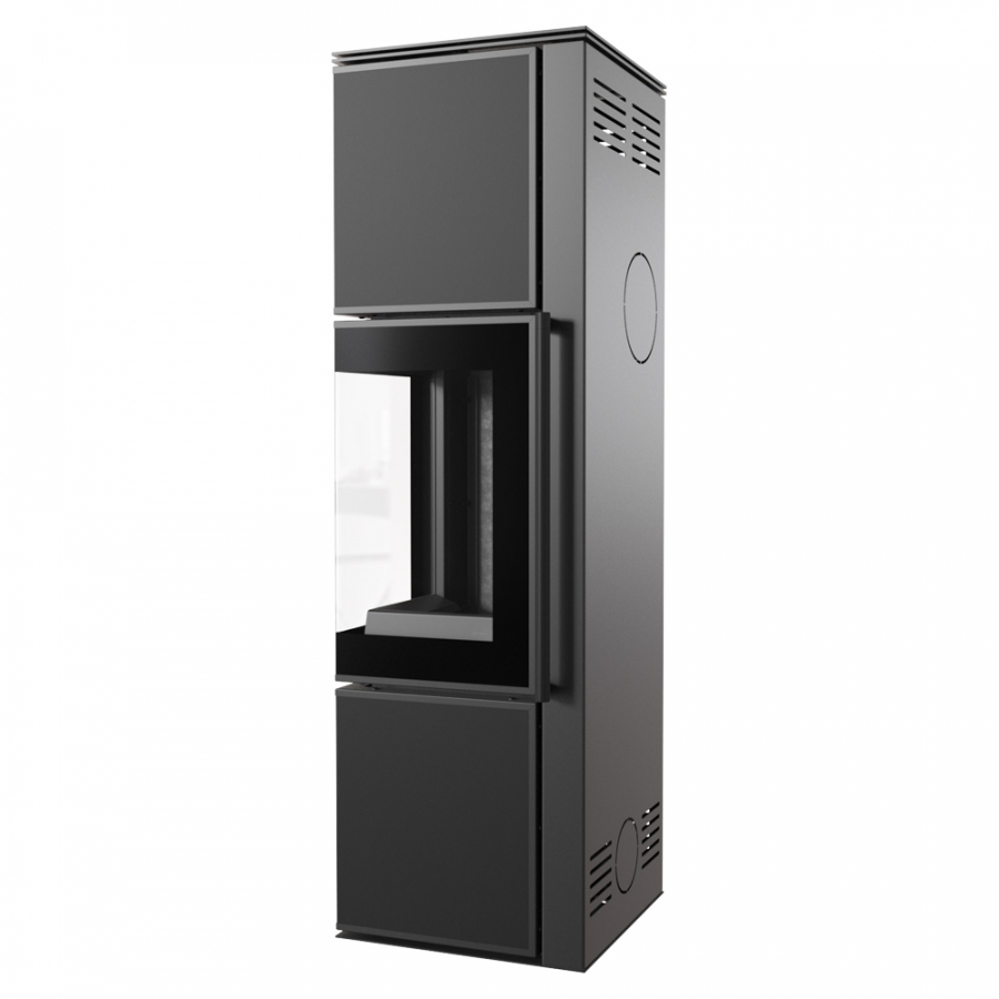 Dvojité zasklenie po stranách zvyšuje tesnosť spaľovacej komory a znižuje tepelné vyžarovanie pre optimalizáciu procesu spaľovania dreva.