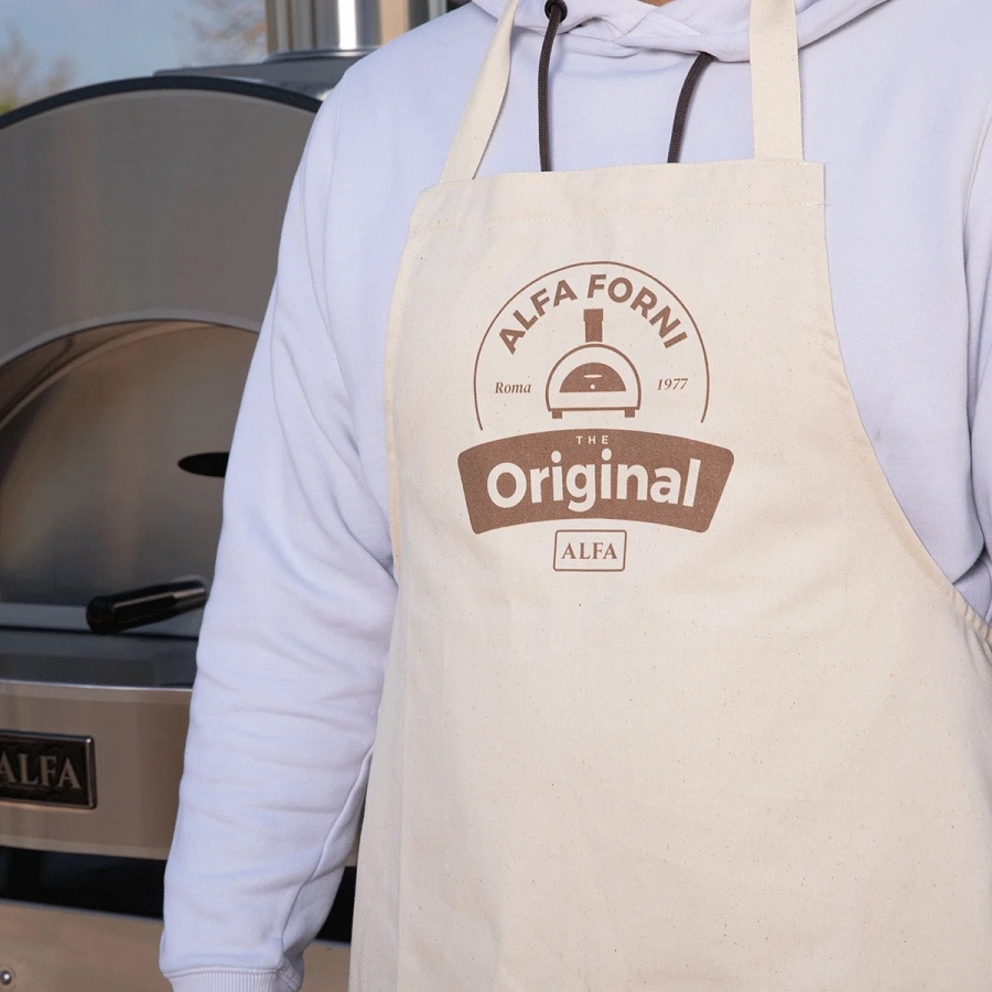 Chráňte svoje oblečenie štýlovo pri pečení pizze zásterou Alfa “The Original , ktorá vás ochráni pred škvrnami.