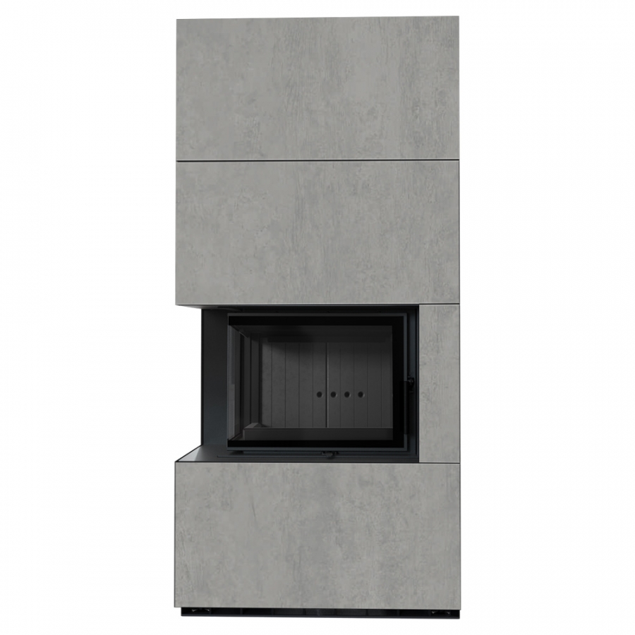 Modulárny krb FLOKI ľavý - povrchová úprava - CEMENTO GRIGIO BOCCIARDATA čierne ohnisko