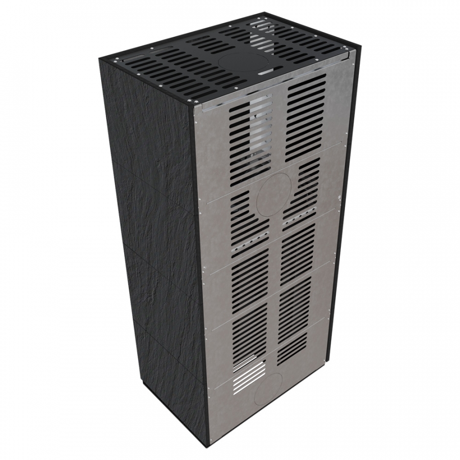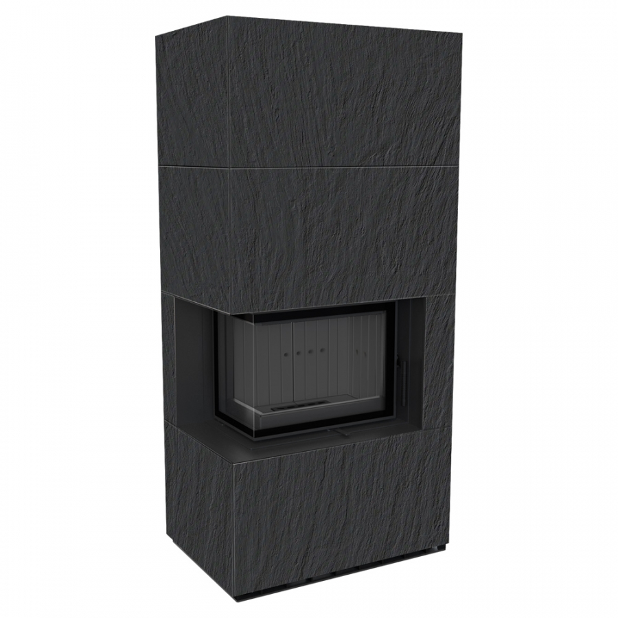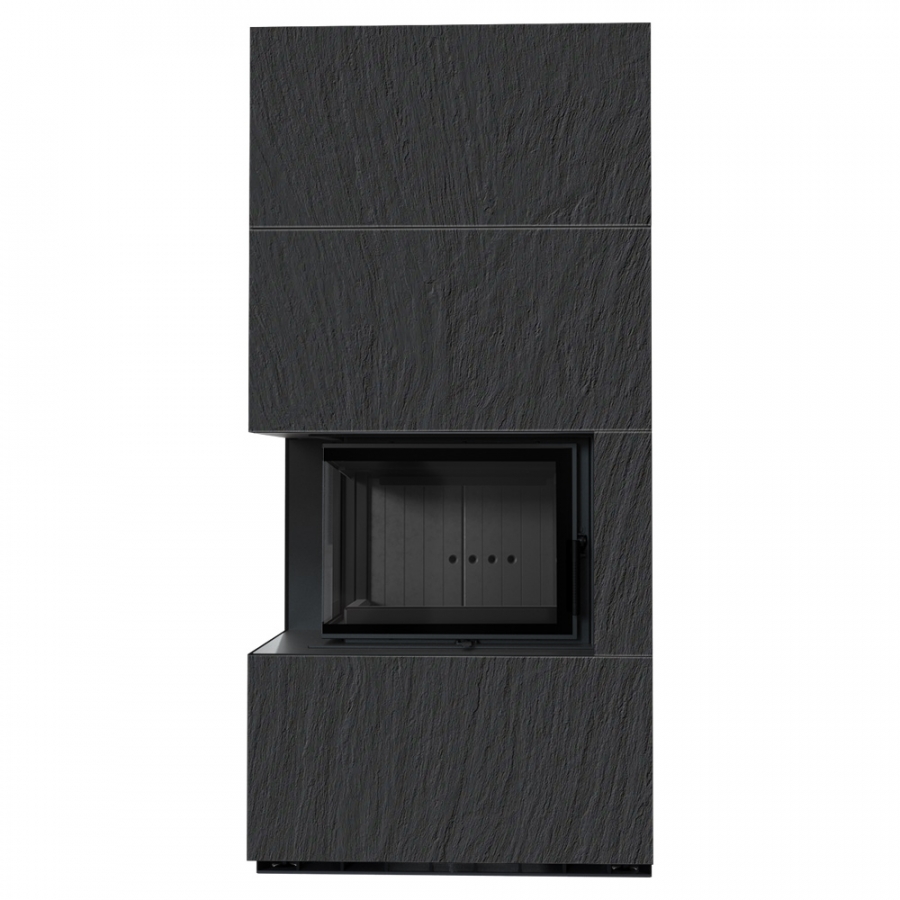 Modulárny krb FLOKI ľavý - povrchová úprava - NATURALI ARDESIA NERO A SPACCO čierne ohnisko