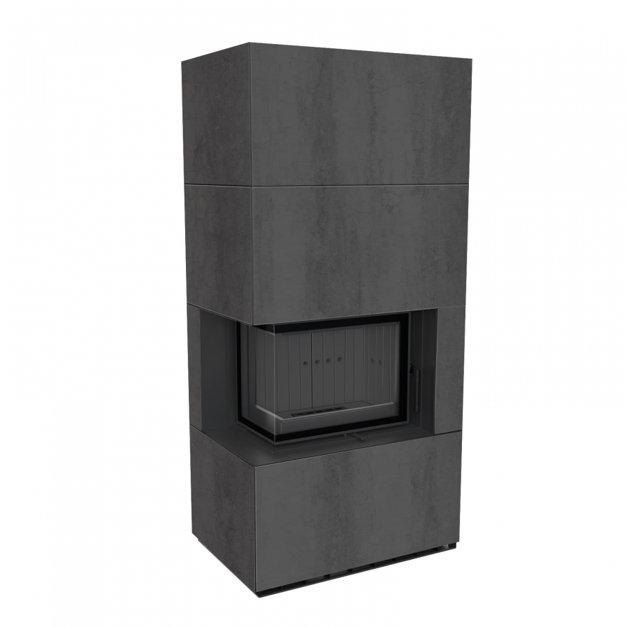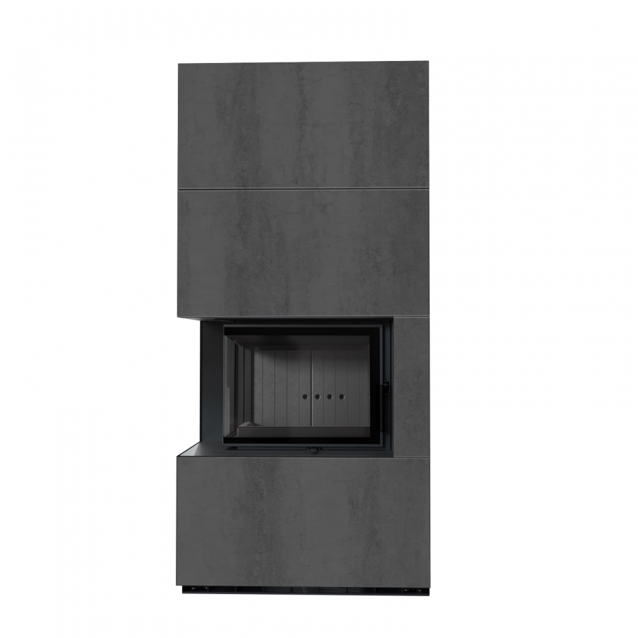 Modulárny krb FLOKI ľavý - povrchová úprava - NATURALI PIETRA DI SAVOIA ANTRANCITE BOCCIARDATA čierne ohnisko