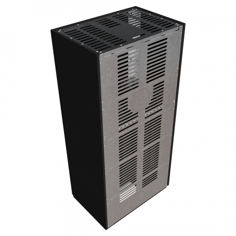 Modulárny krb FLOKI BOX je kombináciou modernej a ekologickej vložky FLOKI s bočnými otváracími dvierkami a modulárneho puzdra na oceľovom ráme so žulovými panelmi. Vďaka minimalizmu krytu sa dokonale hodí do každého interiéru.