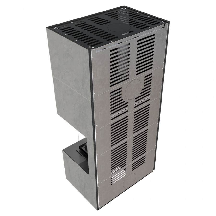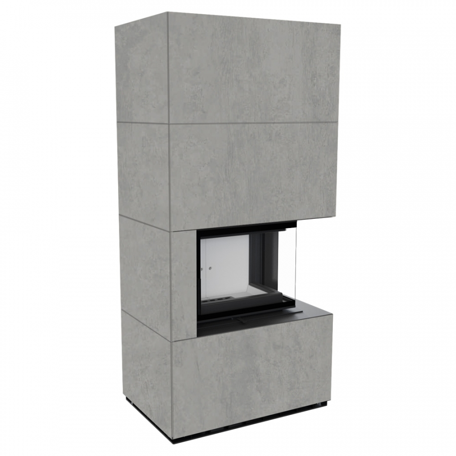 Modulárny krb FLOKI pravý - povrchová úprava - CEMENTO GRIGIO BOCCIARDATA