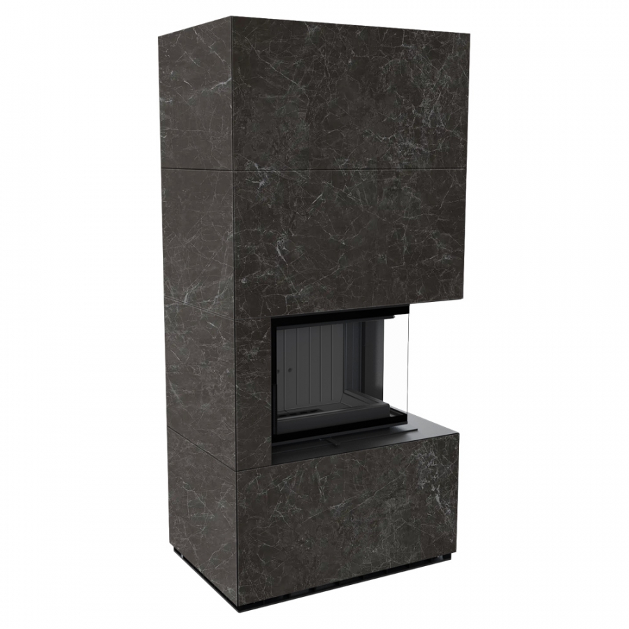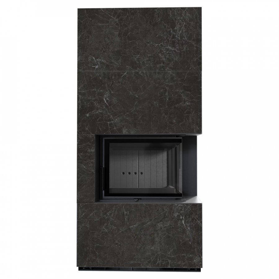 Modulárny krb FLOKI pravý - povrchová úprava - NATURALI NERO GRECO čierne ohnisko