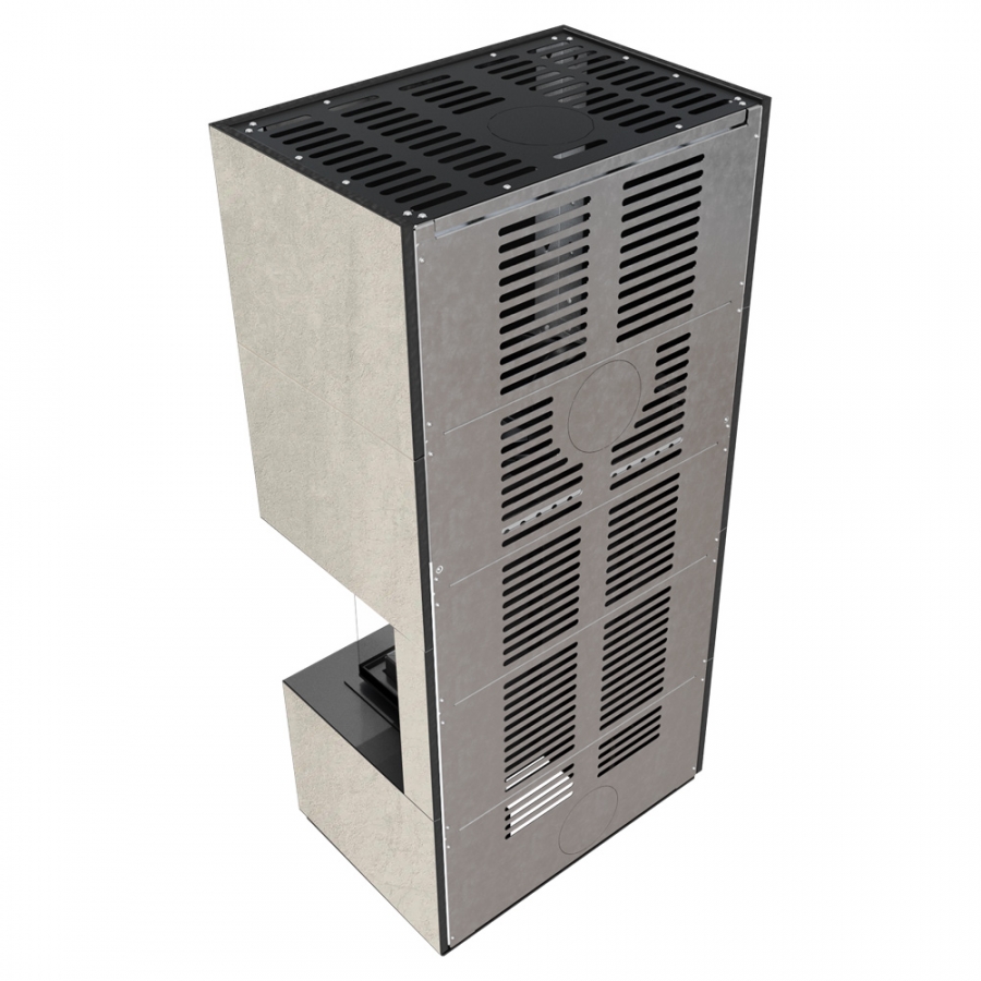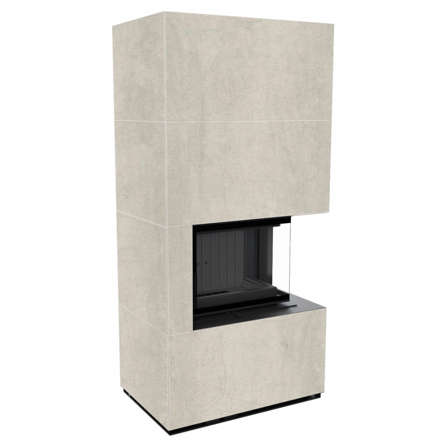 Modulárny krb FLOKI pravý - povrchová úprava - NATURALI PIETRA DI SAVOIA PERLA BOCCIARDATA čierne ohnisko