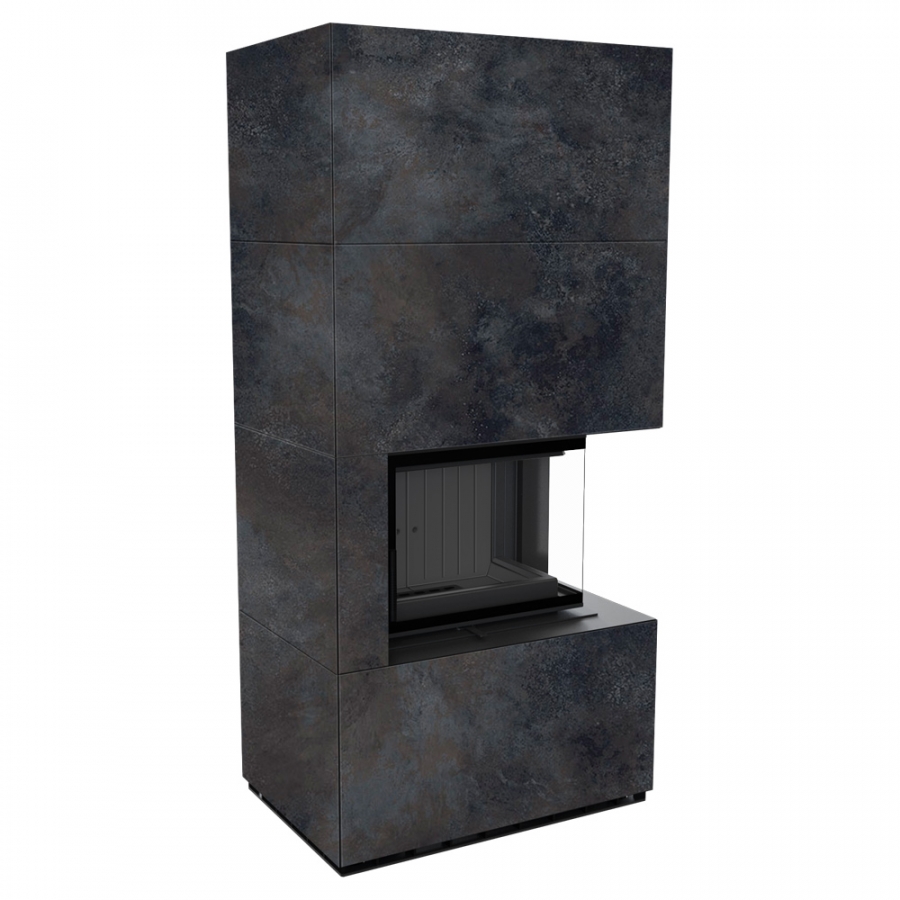 Modulárny krb FLOKI pravý - povrchová úprava - OSSIDO NERO čierne ohnisko