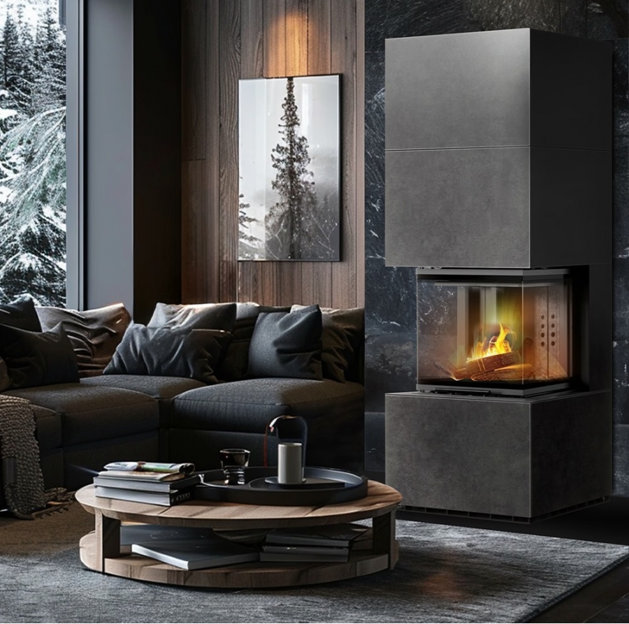 - hotová konštrukcia s kremennými sintrovanými panelmi zaručuje elegantný a moderný vzhľad krbu,