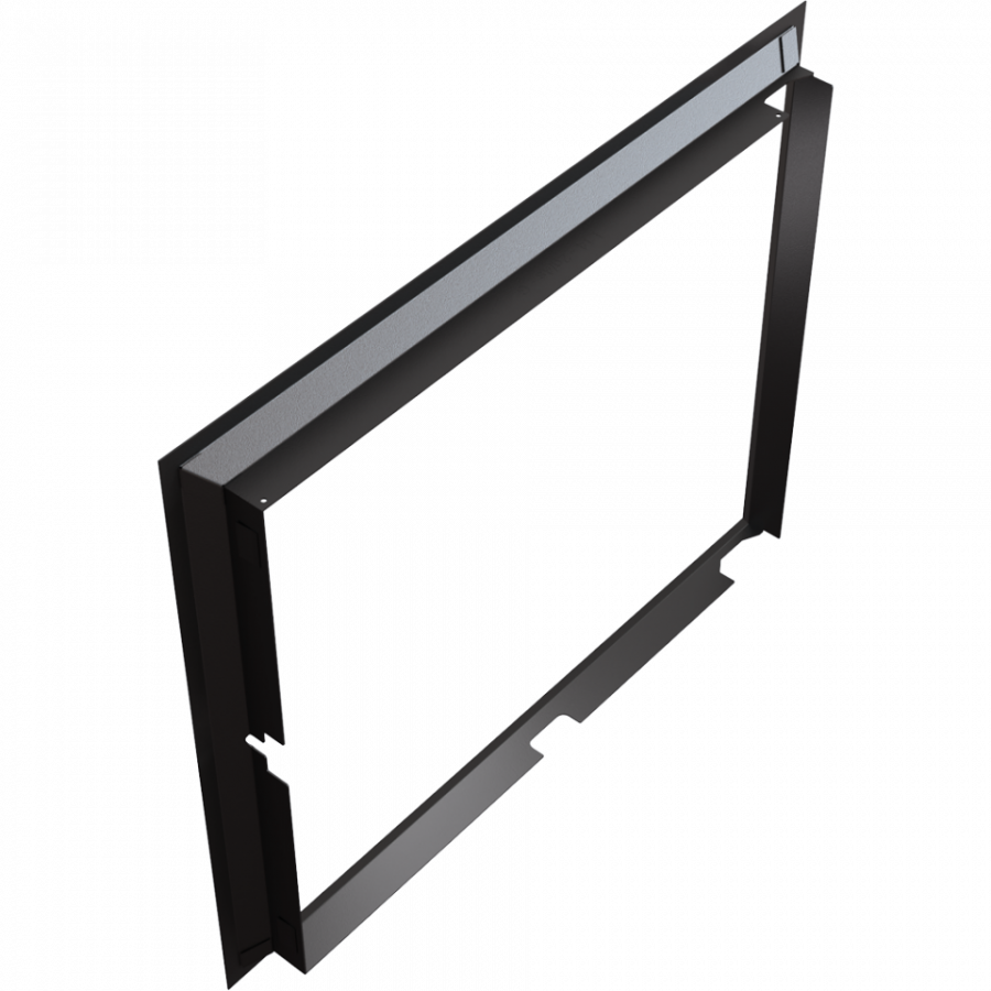 Moderný oceľový rám pre krbové vložky LUCY 15 s rovným presklením. Hlavnou výhodou je jeho rýchla a jednoduchá montáž bez pomoci akéhokoľvek náradia.