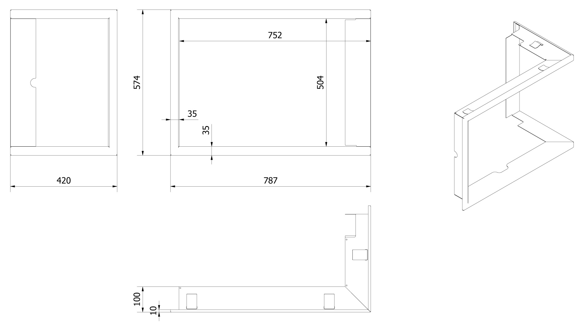 Montážny rámik 90°- 35mm pre krbové vložky LUCY 12 NEW pravé presklenie