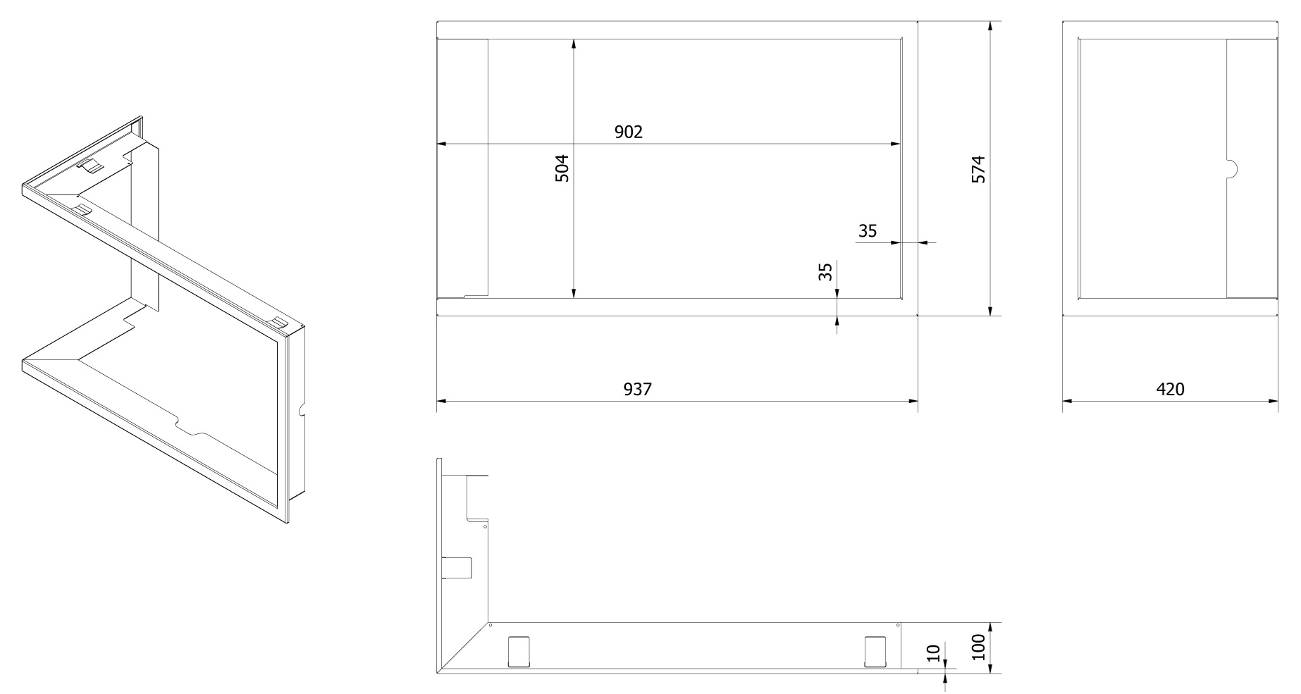Montážny rámik 90°- 35mm pre krbové vložky LUCY 14 NEW ľavé presklenie