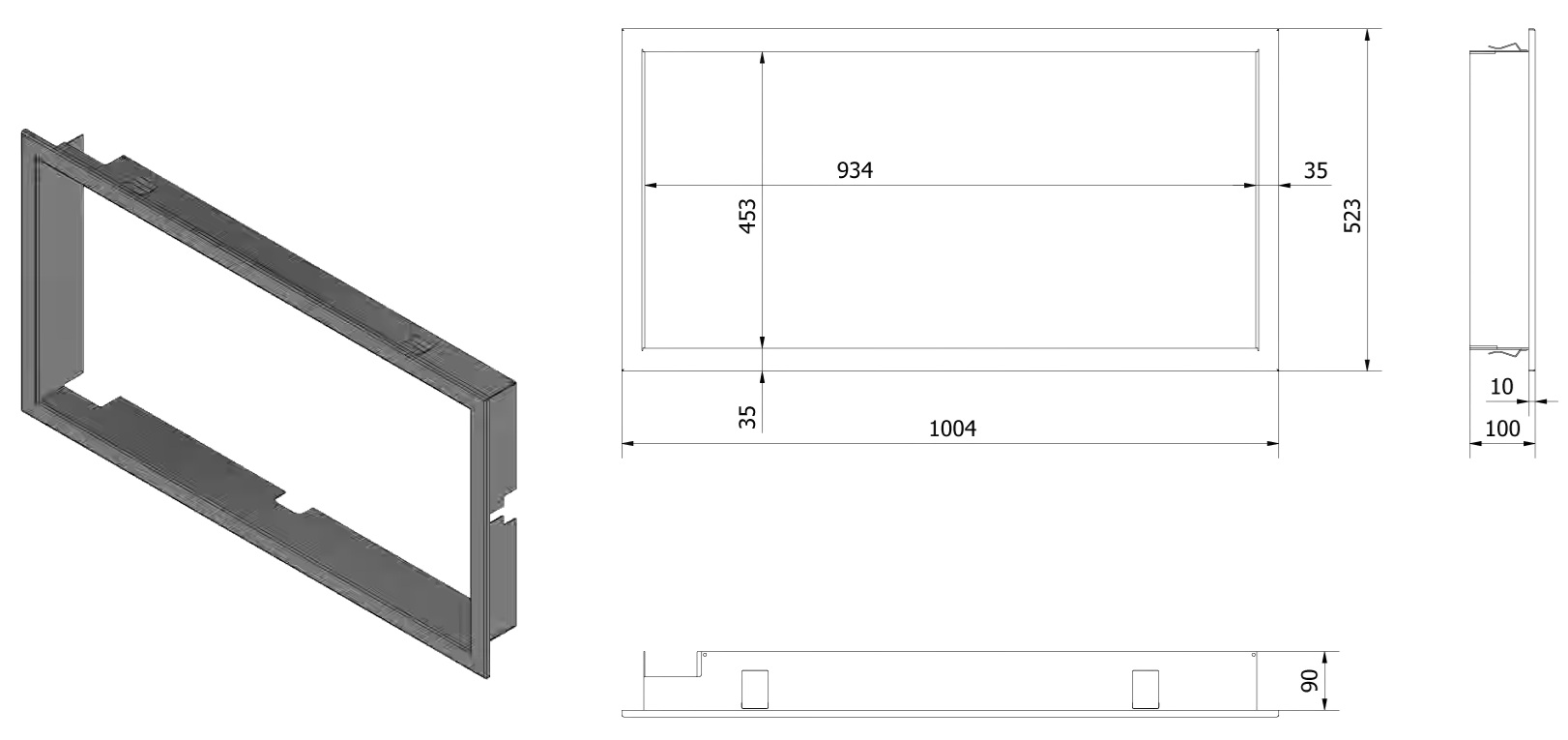 Montážny rámik 90°- 35mm pre krbové vložky LUCY 16 NEW