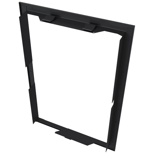 Moderný oceľový rám pre krbovú vložku NADIA 9. Hlavnou výhodou je jeho rýchla a jednoduchá montáž bez pomoci akéhokoľvek náradia.