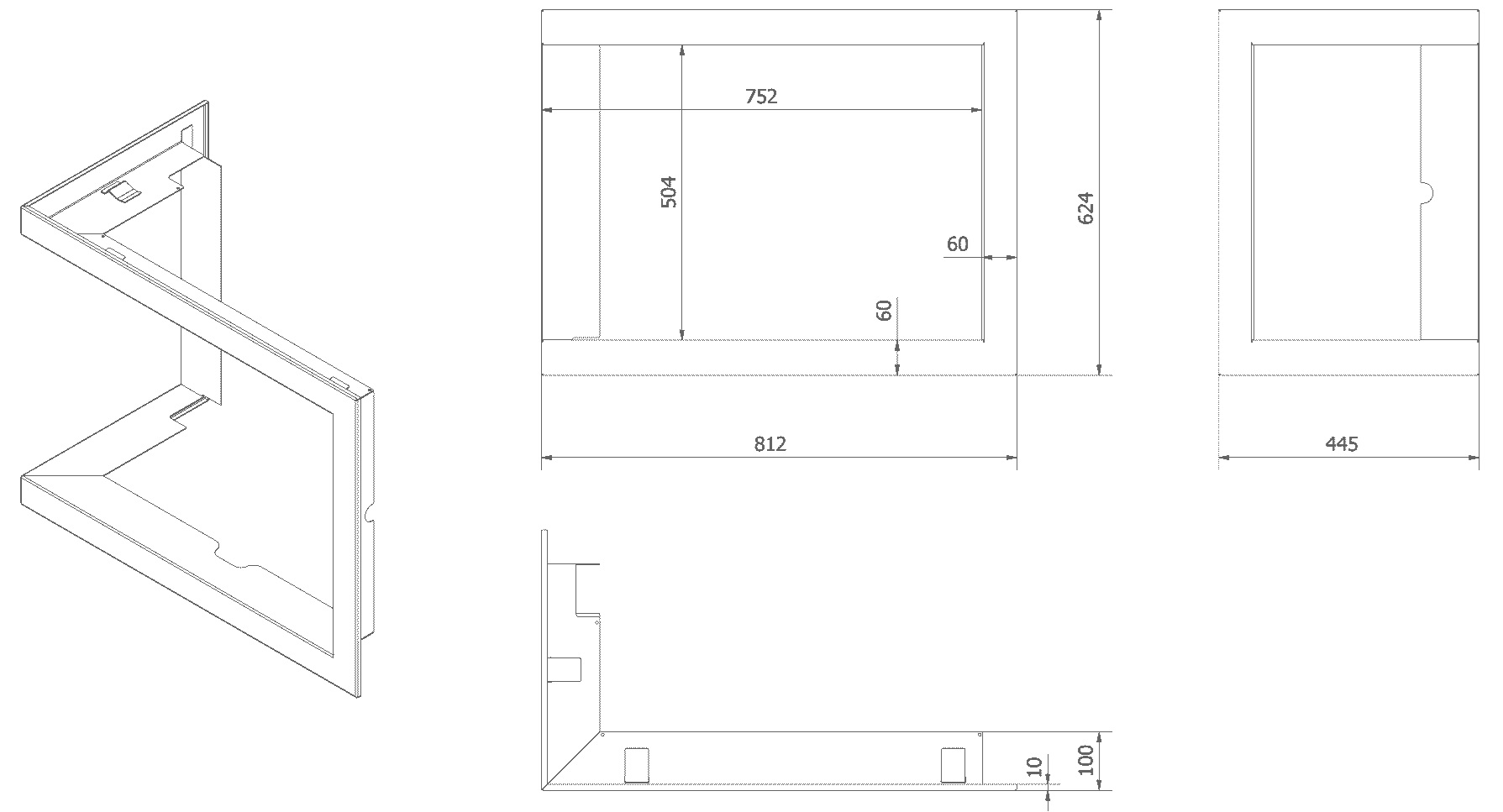 Montážny rámik 90°- 60mm pre krbové vložky LUCY 12 NEW ľavé presklenie