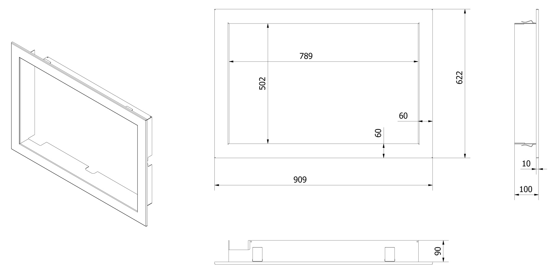 Montážny rámik 90°- 60mm pre krbové vložky LUCY 14 NEW