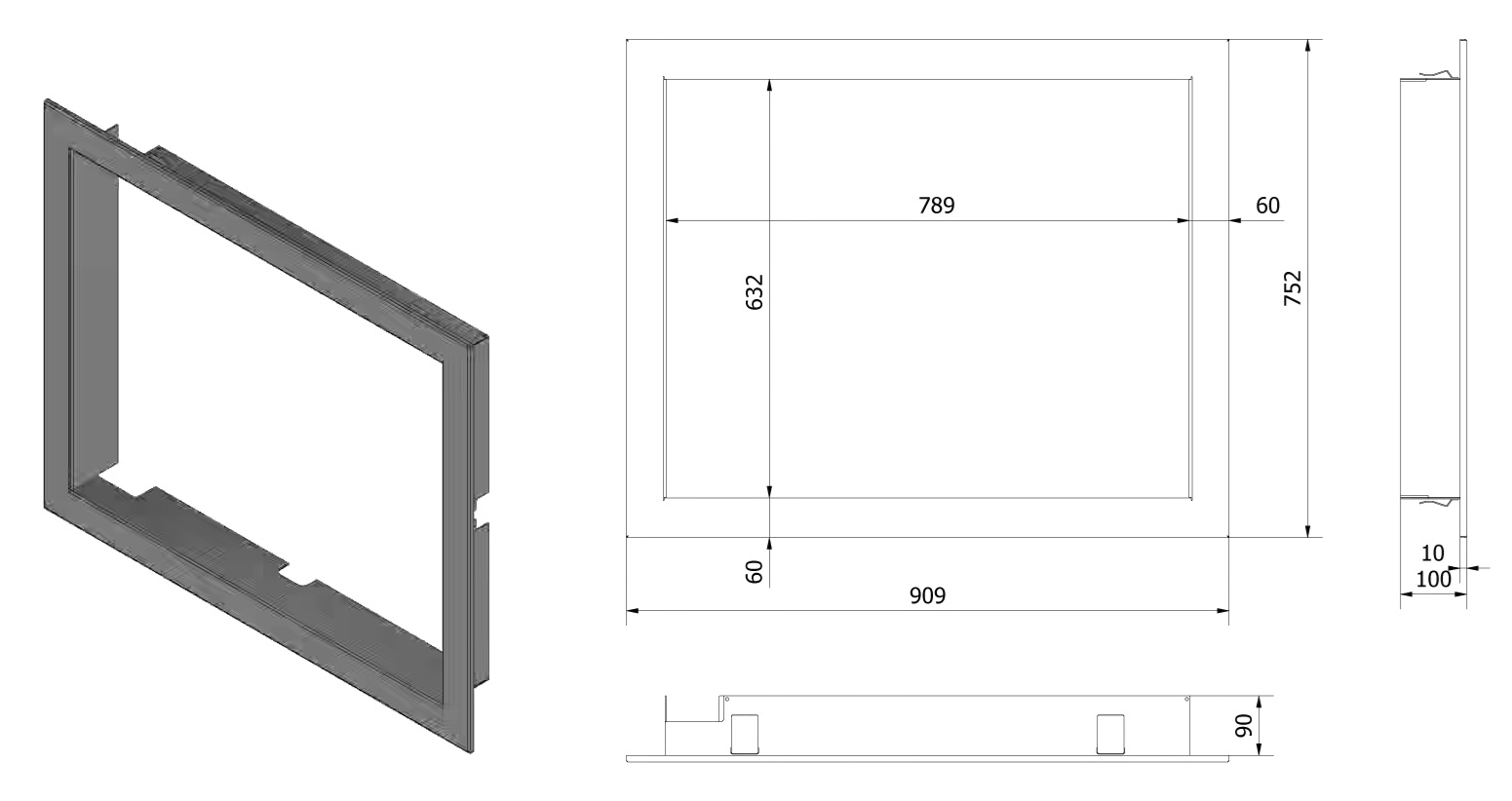 Montážny rámik 90°- 60mm pre krbové vložky LUCY 15 NEW