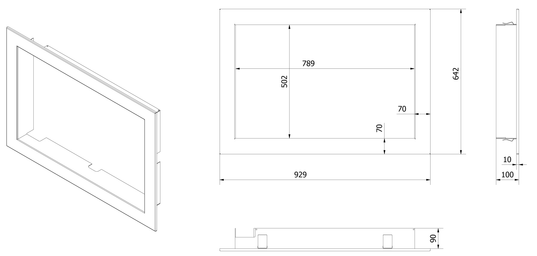 Montážny rámik 90°- 70mm pre krbové vložky LUCY 12 NEW pravé presklenie