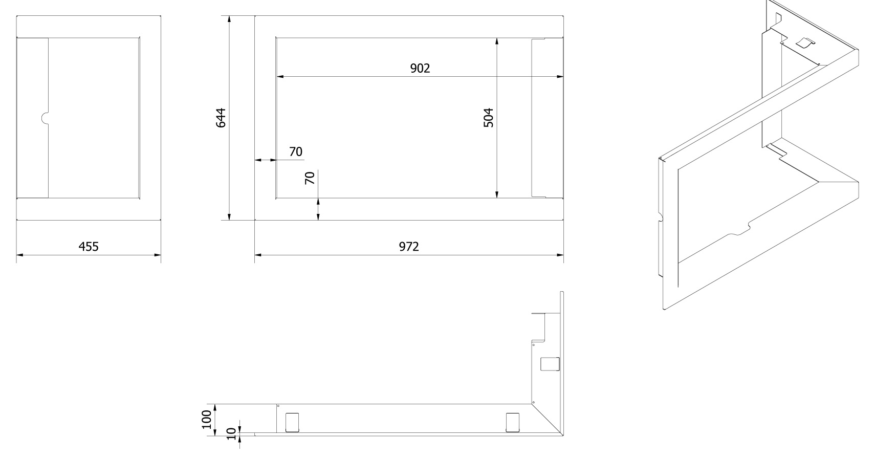 Montážny rámik 90°- 70mm pre krbové vložky LUCY 14 NEW pravé presklenie