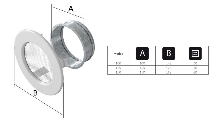 Mriežka okrúhla Ø 125 krémová