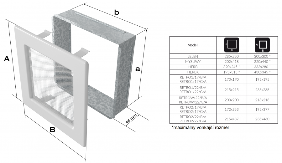 Krbová mriežka slúži na estetické ukončenie rozvodov teplého vzduchu. Montuje sa na stenu alebo na krbovú obstavbu, montáž/demontáž je jednoduchá. Mriežka je zabezpečená vrstvou niklu, vďaka čomu je odolná voči vysokým teplotám. Mriežka RETRO je určená pre milovníkov retro štýlu a dodá každému interiéru jedinečnú atmosféru.