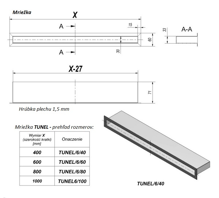 Mriežka TUNEL 60×600 grafitová