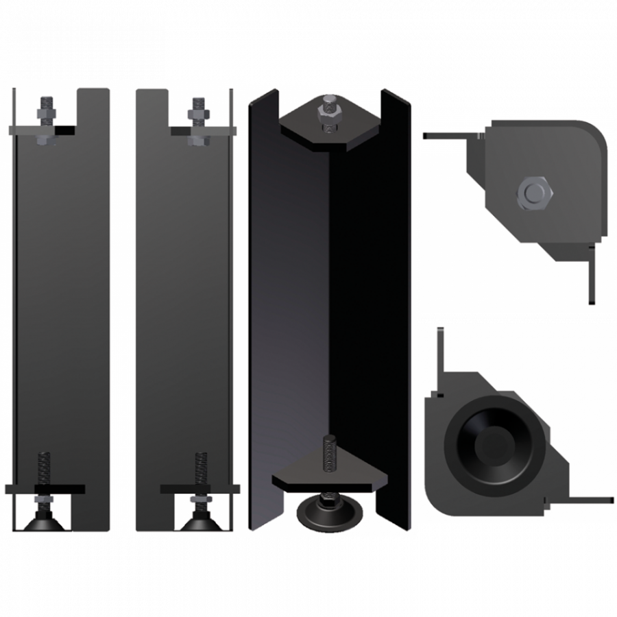 Sada obsahuje: 4 nožky, 4 šrouby M10, 4 matice M10 a 4 podložky.