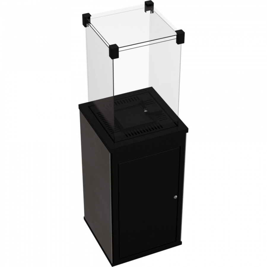 Spodná časť - korpus je vyrobený z ocele, ktorý je pokrytý prírodným sintrom. Prístup do dolnej komory je zaistený zámkom proti otvoreniu neoprávnenou osobou. Ohnisko je vďaka sklu chránené aj pred vetrom a štvorstranné presklenie zabezpečuje rovnomerné odovzdávanie tepla na každú stranu.