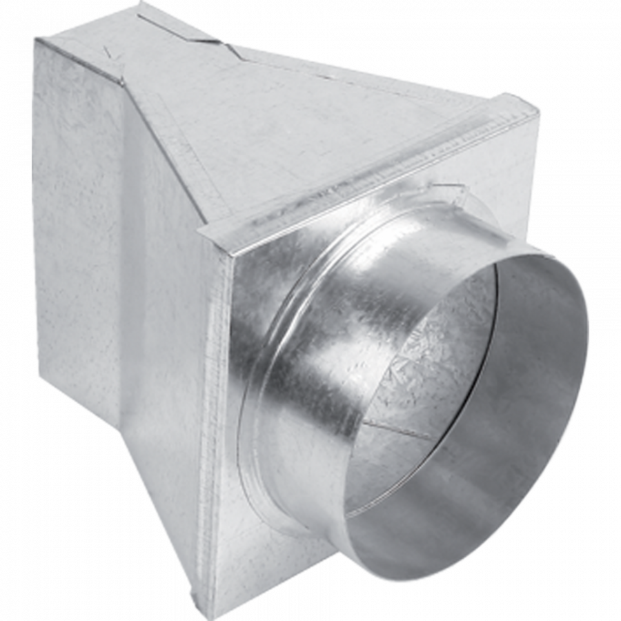 Prechod z kanálu 15x5 cm na rúru s priemerom 150 mm - priamy. Použiva sa na distribúciu teplého vzduchu alebo na prívod studeného vzduchu pod krb.