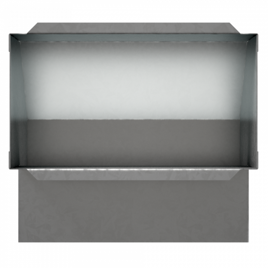 Redukcia z kanálu 15x5 cm na mriežku 11x17 cm možno použiť na rozvod teplého vzduchu alebo na prívod studeného vzduchu pod krb.