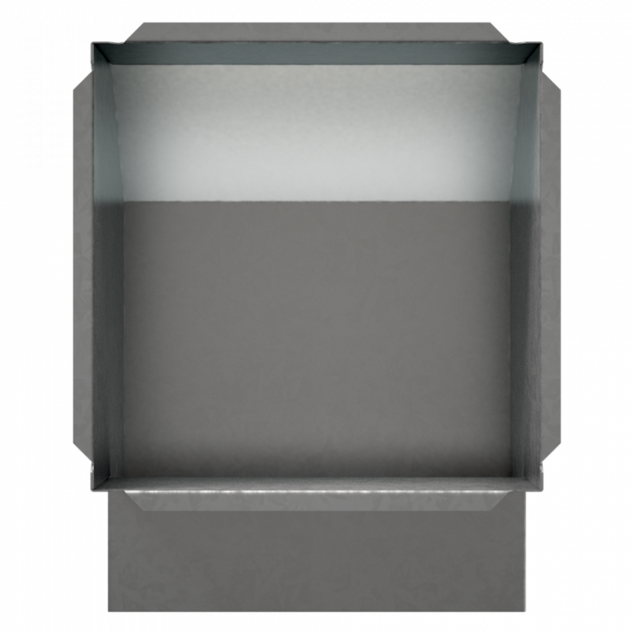 Redukcia z kanálu 15x5 cm na mriežku 17x17 cm možno použiť na rozvod teplého vzduchu alebo na prívod studeného vzduchu pod krb.