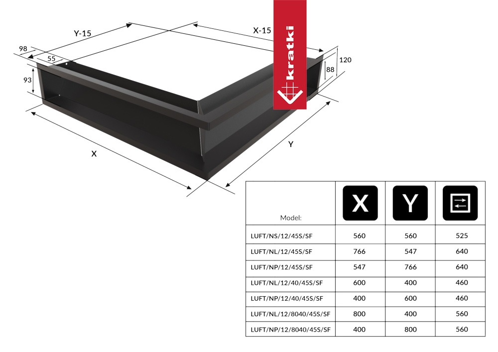 Krbová mriežka LUFT 45S sa inštaluje na krbové obstavby a je estetickým zakončením otvorov potrebných na prúdenie vzduchu v krbe. Vďaka svojmu dizajnu je ideálna pre moderné interiéry. Charakteristickým črtom modelu LUFT 45S je maskovaný otvor mriežky - cez krbovu mriežku nie je vidno do krbovej obstavby, no napriek tomu zabezpečuje optimálne prúdenie vzduchu. Musí byť však dodržaná správna montáž: ak umiestňujete mriežku nad krbovou vložkou, ktorá má slúžiť na výdaj teplého vzduchu, otočte mriežku otvorom smerom dole. Ak umiestňujete mriežku pod krbovou vložkou, ktorá má slúžiť na príjem chladného vzduchu, otočte mriežku otvorom smerom hore. Pamätajte tiež na minimálnu požadovanú veľkosť jednotlivých mriežok podľa výkonu krbovej vložky. Mriežky sú farbené práškovou metódou, čím sú odolné voči vysokým teplotám i mechanickému poškodeniu. Záruka 24 mesiacov.