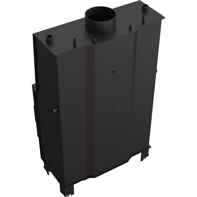 Špeciálne navrhnutý vodný plášť umožňuje efektívne využívať teplotu zo spalín a odovzdávať do vykurovacieho systému, vďaka čomu sa dosahuje vysoká energetická účinnosť krbovej vložky. Priemer vstupu/výstupu 1 col, vychladzovacia špirála 1/2 col.