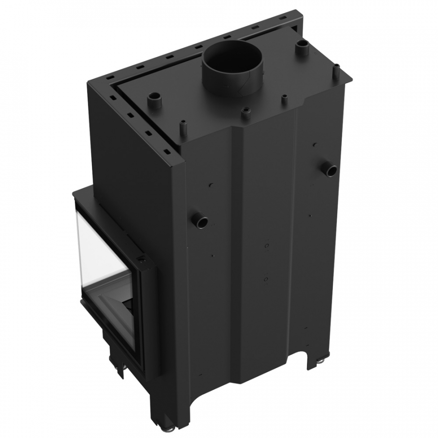 Špeciálne navrhnutý vodný plášť umožňuje efektívne využívať teplotu zo spalín a odovzdávať do vykurovacieho systému, vďaka čomu sa dosahuje vysoká energetická účinnosť krbovej vložky. Priemer vstupu/výstupu 1 col, vychladzovacia špirála 1/2 col.