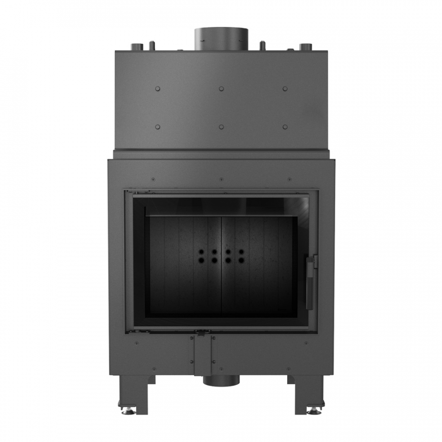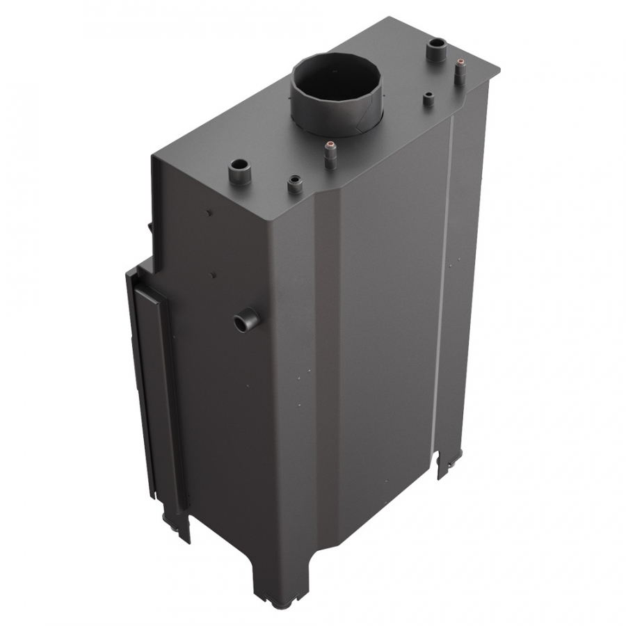 Špeciálne navrhnutý vodný plášť umožňuje efektívne využívať teplotu zo spalín a odovzdávať do vykurovacieho systému, vďaka čomu sa dosahuje vysoká energetická účinnosť krbovej vložky. Priemer vstupu/výstupu 1 col, vychladzovacia špirála 1/2 col.